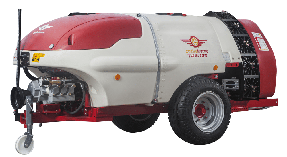 Pulverizador rebocado versátil, projetado principalmente para fazendas de frutas cítricas e frutíferas, com larguras de entrelinhas mais estreitas. Incorpora o sistema twister spray, ganhando eficiência.​